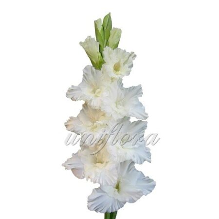 Гілка гладіолуса чисто-білого кольору. Урочистий, величний білий колір, можна подарувати, як чоловікові, так і дівчині.